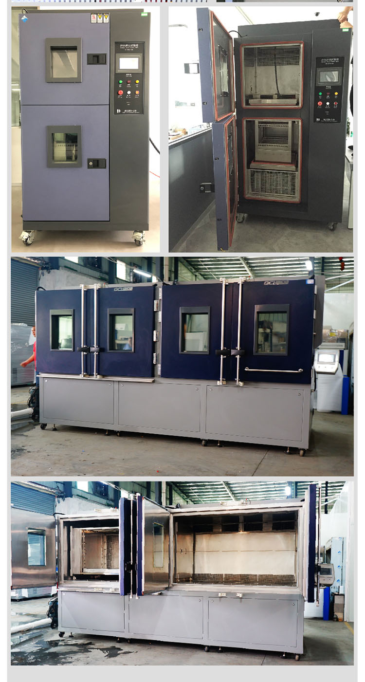 冷熱沖擊試驗機是金屬、塑料、橡膠、電子等材料行業必備的測試設備,適用于航空、航天、軍工、艦船、電工、電子等產品整機及零部件的高低溫沖擊試驗及高溫或低溫環境下的貯存和試驗。以待測物品來測試因瞬間下經極高低溫急速變化而對產品是否造成不佳的影響,以短時間內實驗其熱脹冷縮所引起的化學變化或物理傷害,以便對試品或試品試驗行為作出評價。全部功能采用計算機控制,系自主開發的軟件,有良好的操作接口,使用戶的操作和監測都更加簡單和直觀,保持功能可以使你正在運行的程序保持狀態,可以臨時更改此程序段的數值,可以在屏幕上設置時間和參數,使制冷、加熱、溫度切換切換,按設定值自動進行。 兩箱式產品需要在高溫室和低溫室之間移動,有轉換時間短的特點,一般轉換時間在≤10S內 設計標準: MIL STD,GB,JIS,JEDEC,IEC等測試規范;能符合GB2423.1-89;GB2423.2-89;GB2423.4-89;GB/T2423.3-93;GB/T2423-93等標準。GB/T2423.1-1989低溫試驗方法、GB/T2423.2-1989高溫試驗方法、GB/T2423.22-1989溫度變化試驗、GJB150.5-86溫度沖擊試驗、GJB360.7-87溫度沖擊試驗、GJB367.2-87 405溫度沖擊試驗、日本工業標準JIS、工業標準JESD22、通信行業標準GR-1221-CORE、GBT 10589-2008 低溫試驗箱技術條件、GBT 11158-2008 高溫試驗箱技術條件 | ||
