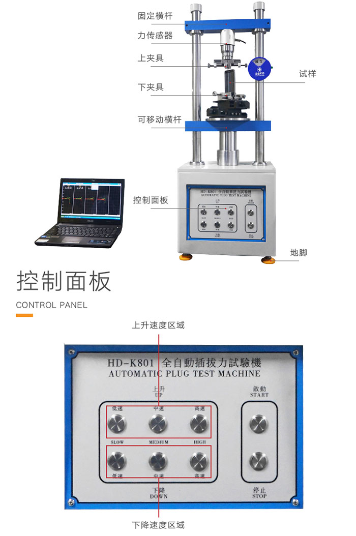 插拔力試驗(yàn)機(jī)適用于各種手機(jī)及電腦周邊連接器的插拔力試驗(yàn),本機(jī)能解決各種連接器測(cè)試的夾具問題,及測(cè)試時(shí)公母連接器能自動(dòng)對(duì)準(zhǔn),不會(huì)有吃單邊的問題。 特點(diǎn) 1.可連續(xù)做插入力及拔出力值之變化情形;可作連接器插拔壽命試驗(yàn)。 2.采用伺服系統(tǒng)脈沖控制,控制精度為0.001mm, 3.通過電腦可作一系列的過程控制:插拔行程、速度、次數(shù)、暫停時(shí)間、插拔力顯示以及繪制位移和插拔曲線圖,報(bào)表打印、數(shù)據(jù)儲(chǔ)存。 4.測(cè)試條件皆由計(jì)算機(jī)畫面設(shè)定。 | ||