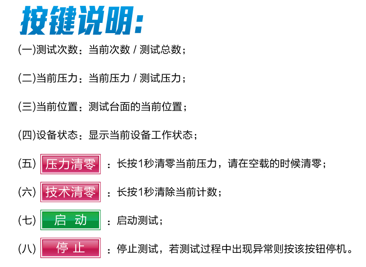 1、型號:HD-F750-2 2、中英文操作系統:PLC 觸摸屏控制器 3、下壓盤:孔的直徑6mm, 間距20mm 4、壓頭:直徑250 mm± 1 mm 5、下邊緣半徑:25 mm± 1 mm 6、壓力:750 N ± 20 N 7、測試速度:(70 ± 5) 次/ 分鐘(可調) 8、樣品尺寸:平行六面體,長和寬度:380 mm± 20 mm,厚度:50 mm± 2 mm 9、計數器:六位計數器,記錄測試次數 10、容量:100kg | ||