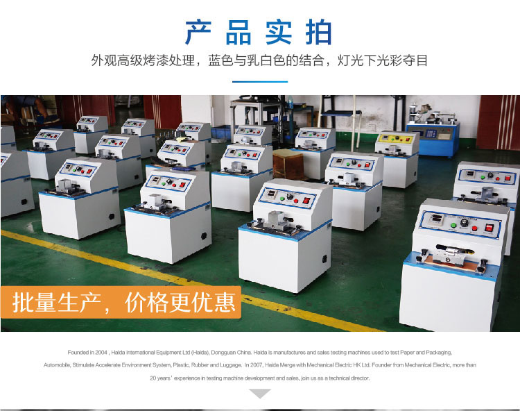 油墨脫色試驗機用來測試油墨粘著力,以此來判斷油墨的好壞.本機可做干磨測試,濕磨測試,脫色變化測試,紙張模糊測試及特殊磨擦測試。墨跡耐磨測試是為評估紙張或紙板上墨跡的耐磨損或耐磨擦力而設計的測試方法。 設計標準:JIS-5071-1,TAPPI-UM486,GB7706 | ||