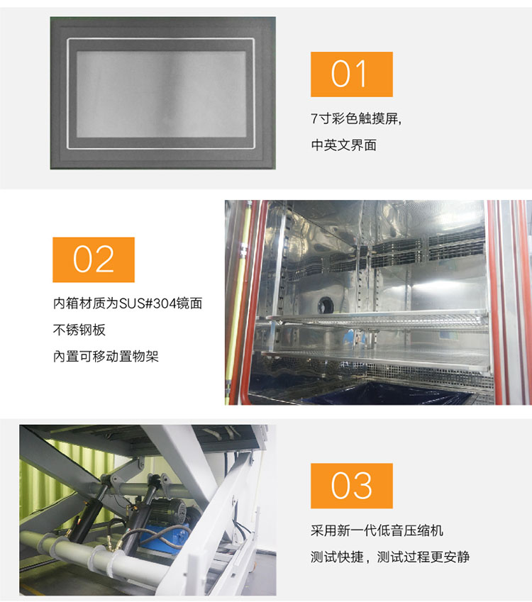 三綜合溫濕度振動試驗箱HD-E809是集溫度、濕度、振動綜合應力試驗系統(三綜合試驗箱),將溫度、濕度氣候應力試驗與振動等力學應力試驗集成一體。試驗系統工作時,將(高溫或低溫,溫度變化)應力、 溫度應力、振動應力以及電應力按規定的組合方式和周期性空間,同時或分別施加到樣品上,與單一應力作用相比,具有環境模擬更真實、試驗效率更高等優點,現已廣泛應用于航空航天、船舶、汽車等電子產品對環境適應性,使用可靠性的考核與評定,應用于電子產品設計缺陷的早期發現及工藝缺陷的篩選場合。 設計標準: GB/T 2423.102-2001 電工電子產品環境試驗 第二部分:試驗方法 試驗:溫度(低溫,高溫)/低氣壓振動(正弦)綜合 GJB150.24A-2009軍用裝備實驗室環境試驗方法 第24部分:溫度-濕度-振動-高度試驗 GB10586,GB10589,GB10592,IEC68-2-3,IEC68-2-1,IEC68-2-30等 | ||